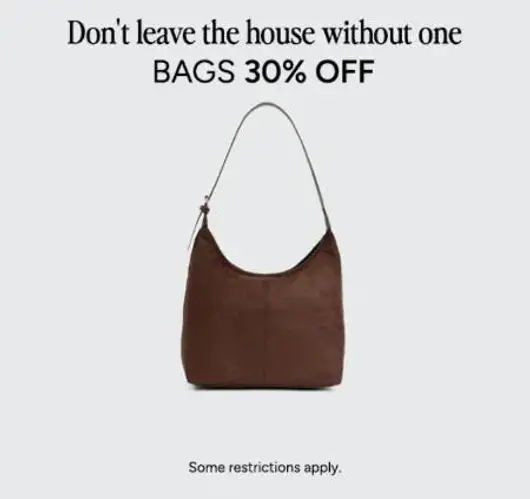 Hurry in and save! Shop in store and get 30% off on select bags.